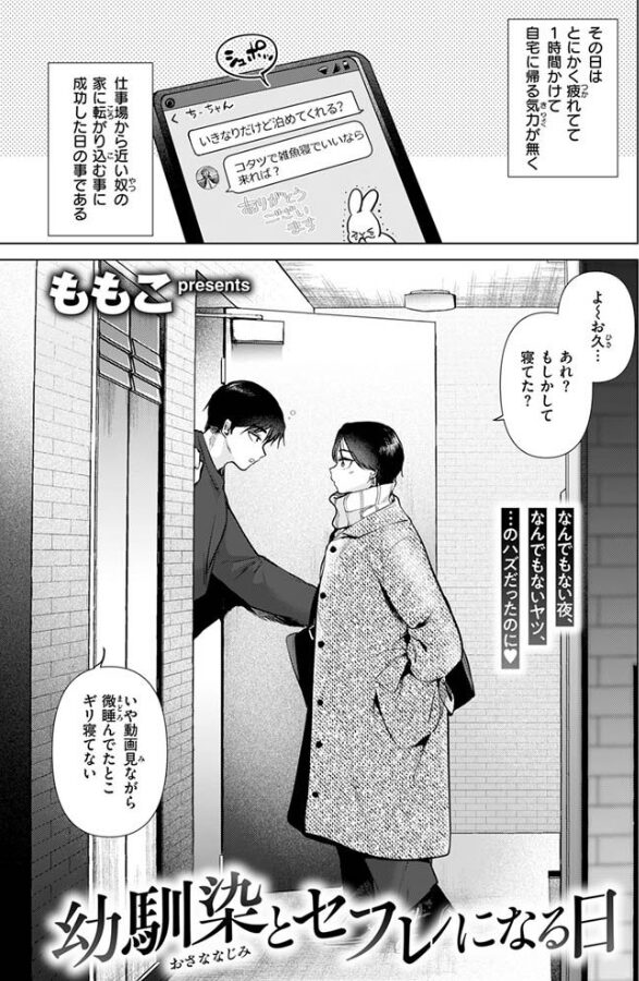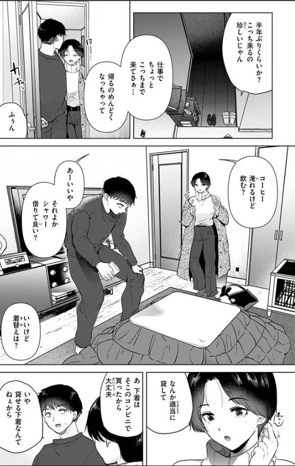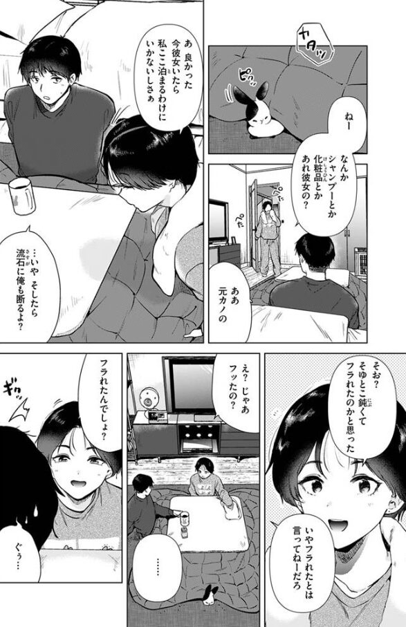 その日はとにかく疲れてて帰る気力がなく、仕事場から近い幼馴染男子の家に転がり込むことに成功したヒロイン。